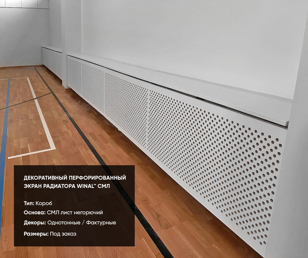 Новая линейка перфорированных решеток для радиаторов отопления на основе СМЛ листа – стиль, безопасность и эффективность в одном продукте. Новый уровень стиля и функциональности с перфорированными экранами для радиаторов WINAL™ СМЛ, выполненными из прочного негорючего магнезита СМЛ. Эти декоративные панели разработаны с учетом потребностей современного интерьера, где важно не только скрыть отопительное оборудование, но и сделать его гармоничным элементом пространства.