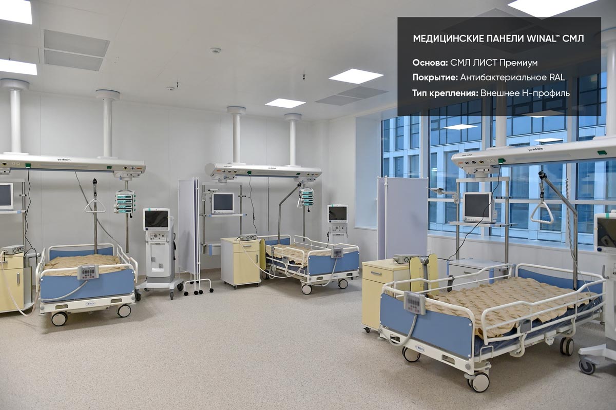 Антибактериальные панели для стен и потолков в медицинских учреждениях и чистых функциональных зонах.
