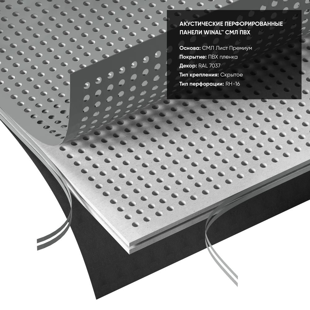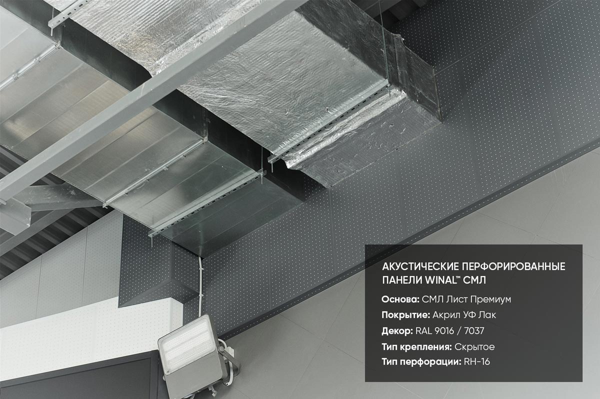 Перфорированные панели на основе окрашенного или ламинированного СМЛ листа обладают оптимальным балансом звукопоглощения и звукоотражения
