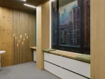 Экран радиатора с подоконником, основа СМЛ, негорючее исполнение, цельное оформление оконной зоны, решение для общественных интерьеров.