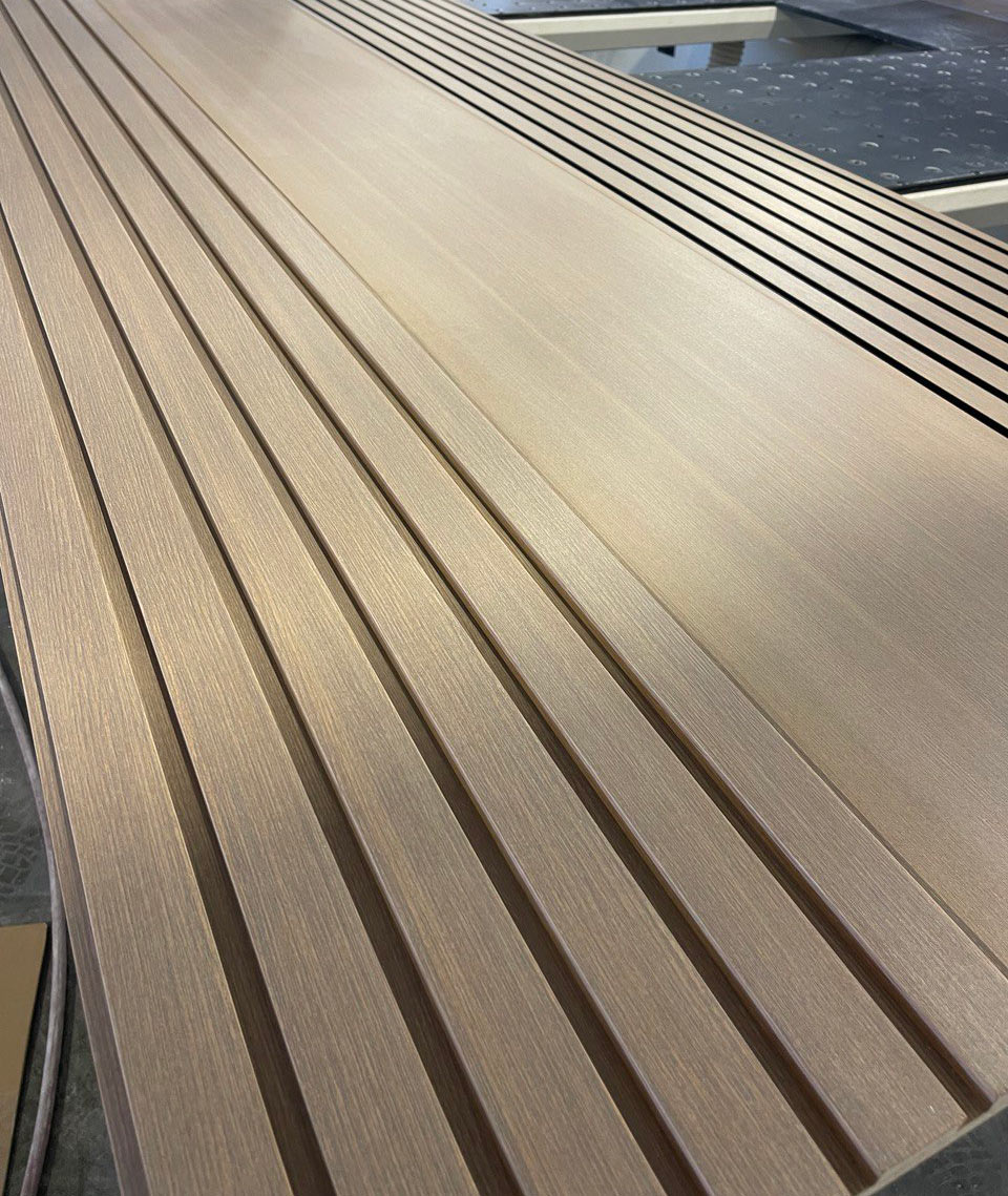 Декоративные реечные стеновые панели под дерево для внутренней отделки стен на основе СМЛ листа премиум окрашенные акриловыми покрытиями.