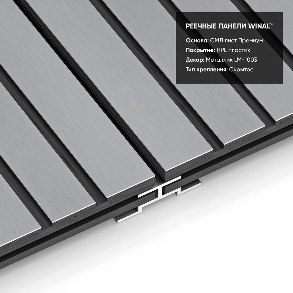 Декоративные реечные панели под металл для внутренней отделки стен на основе СМЛ листа премиум с покрытием HPL.