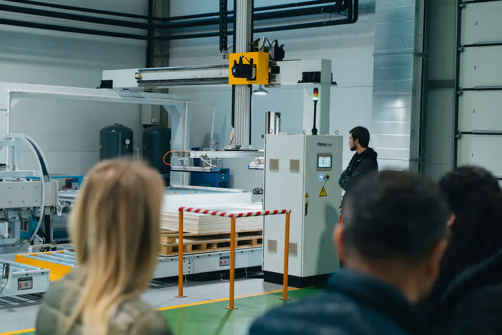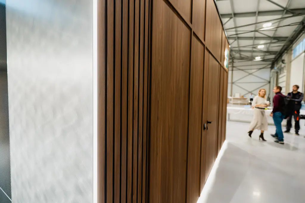 Особое место в программе заняла обзорная экскурсия по нашему современному производству. Уникальные станки, автоматизация процессов до 80% — мы с гордостью делимся своим опытом и технологиями, ведь именно поэтому можем предлагать столь интересные решения для интерьеров.