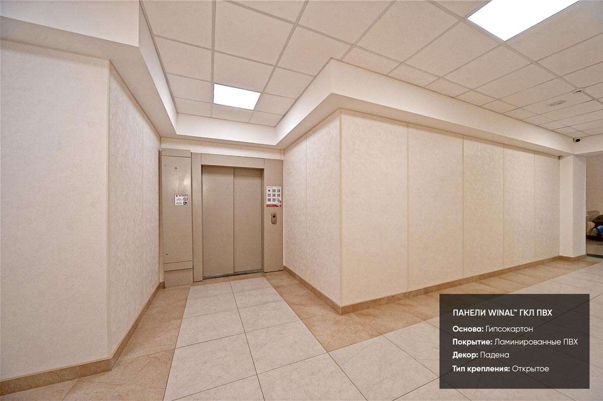 Отделка стен и потолков медицинскими антибактериальными панелями в больнице РЖД. Декоративные стеновые и потолочные панели: гипсокартон ГКЛ ламинированный ПВХ пленкой, система открытого монтажа алюминиевым омега профилем окрашенным в цвет панелей.