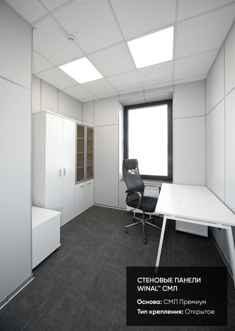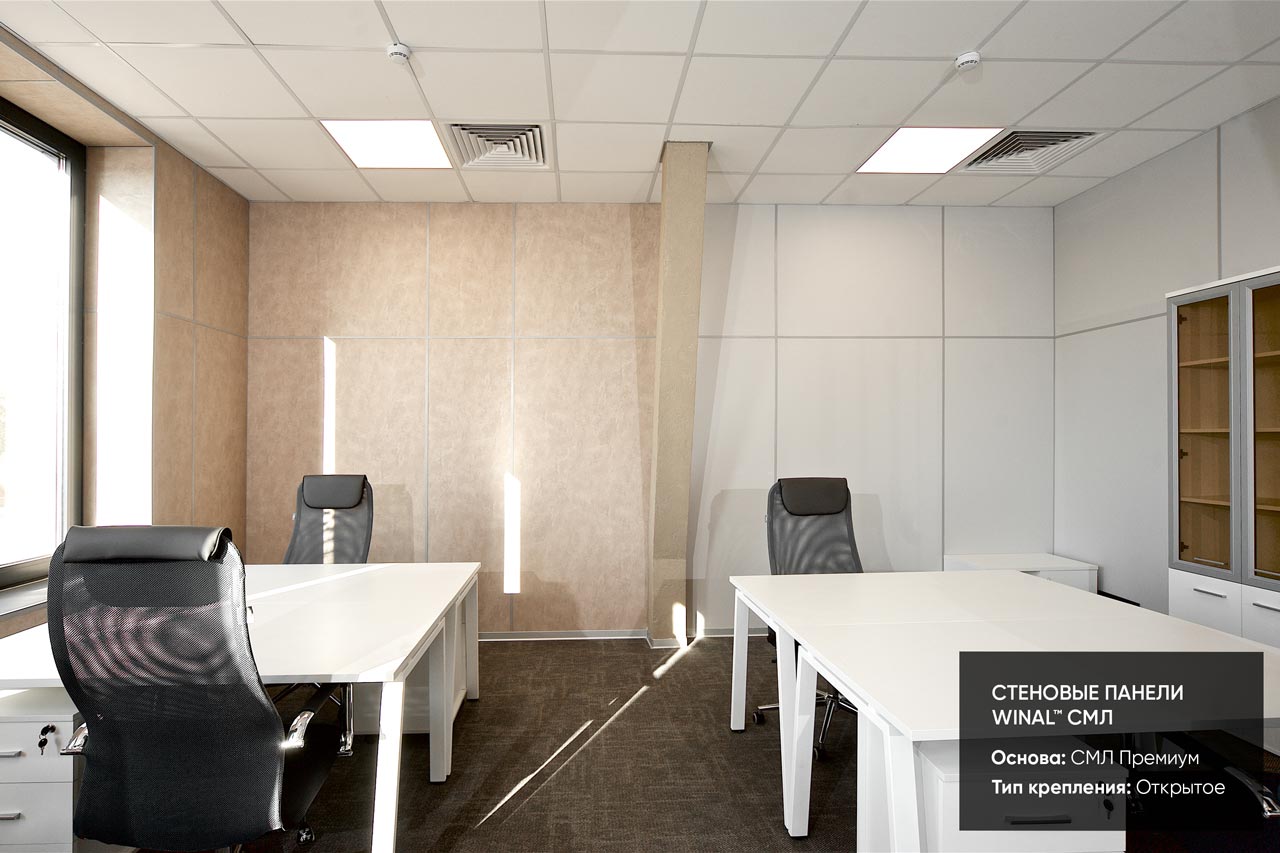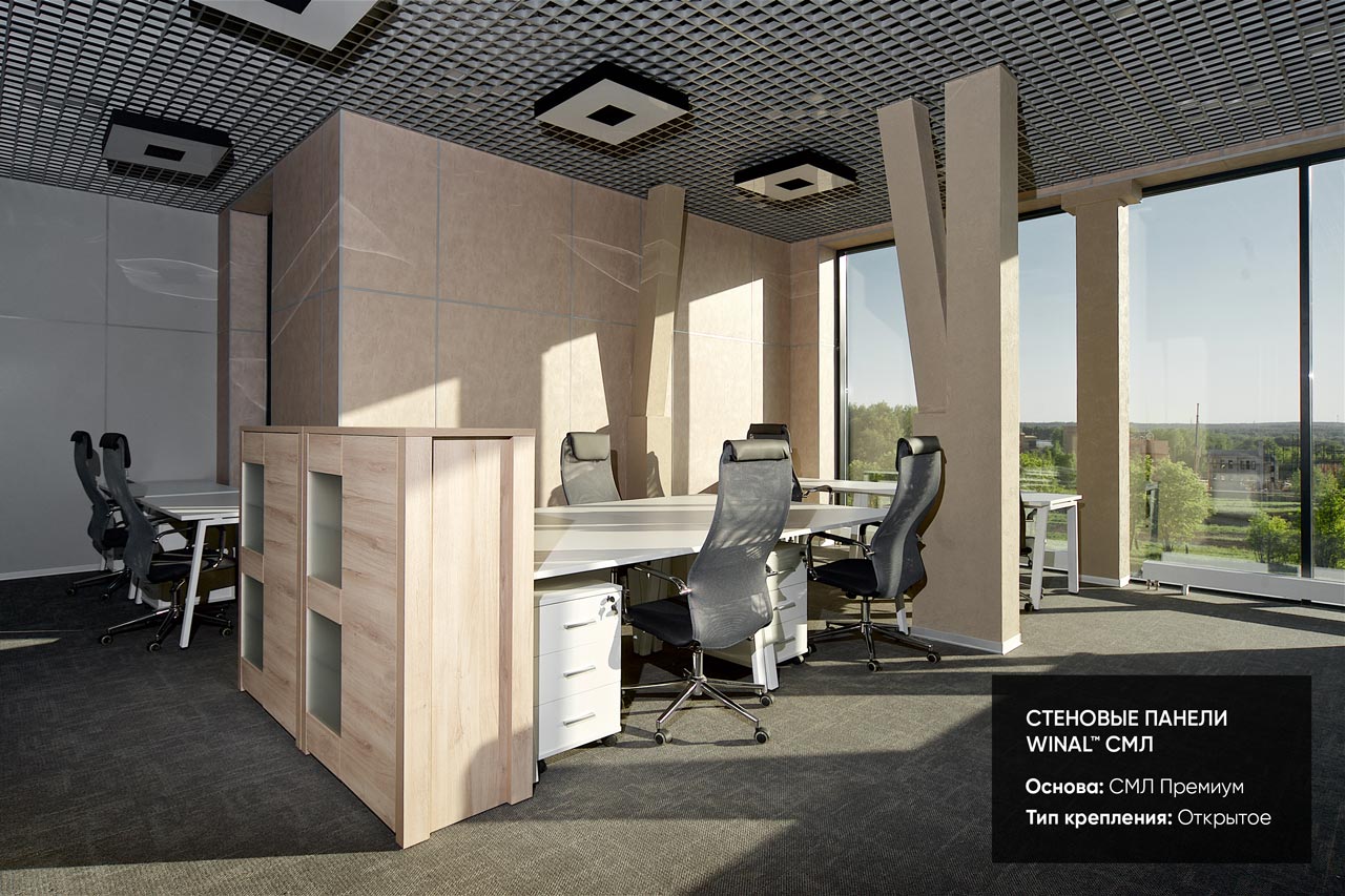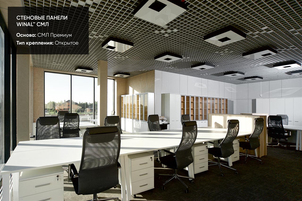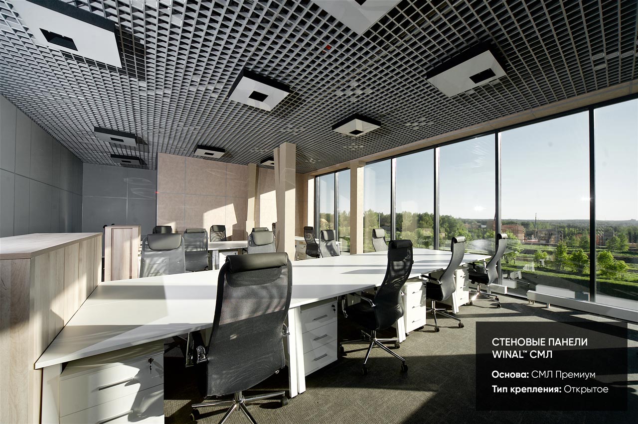 Главная - Решения - Офисы и бизнес-центры - Интерьерные стеновые и реечные панели СМЛ офисное здание АБК Москино