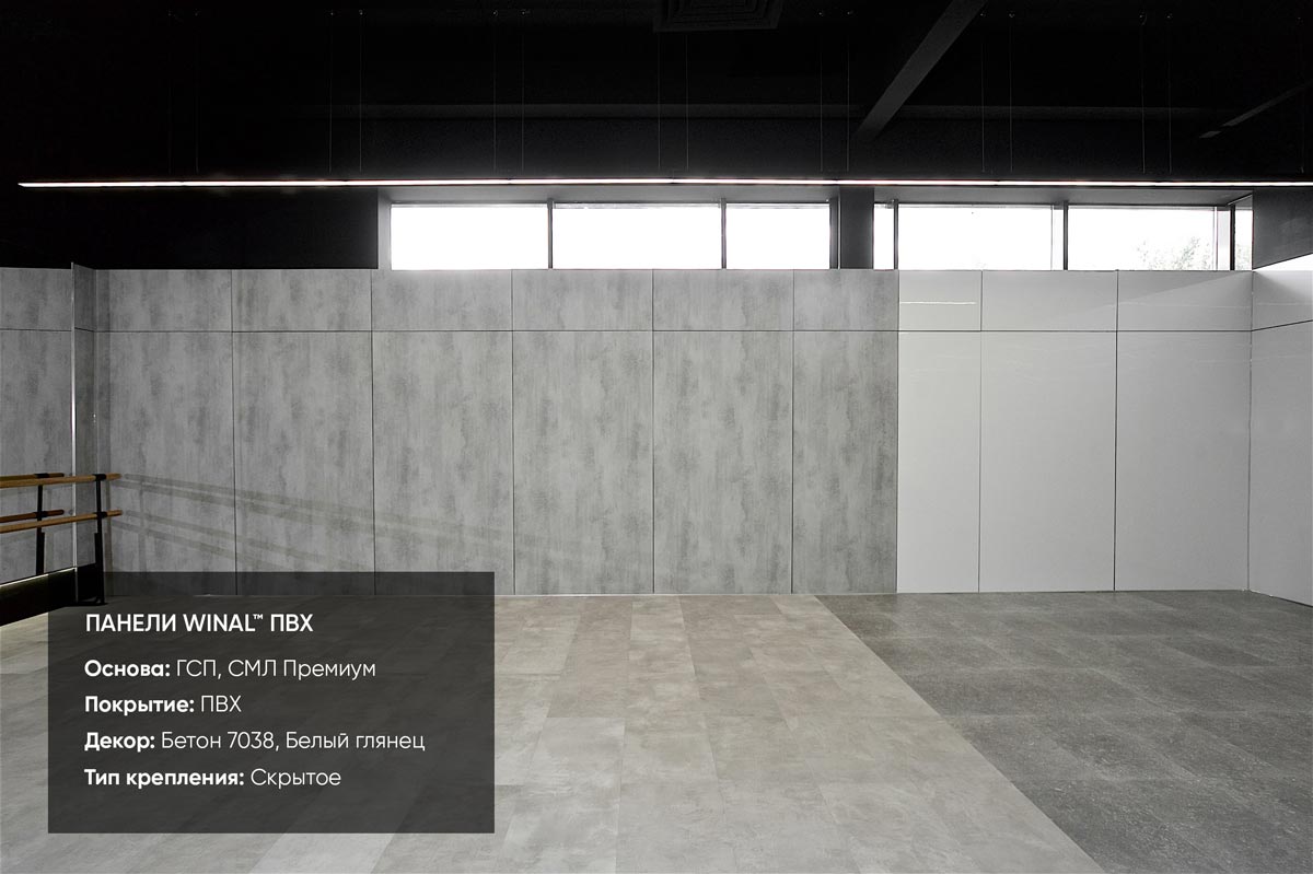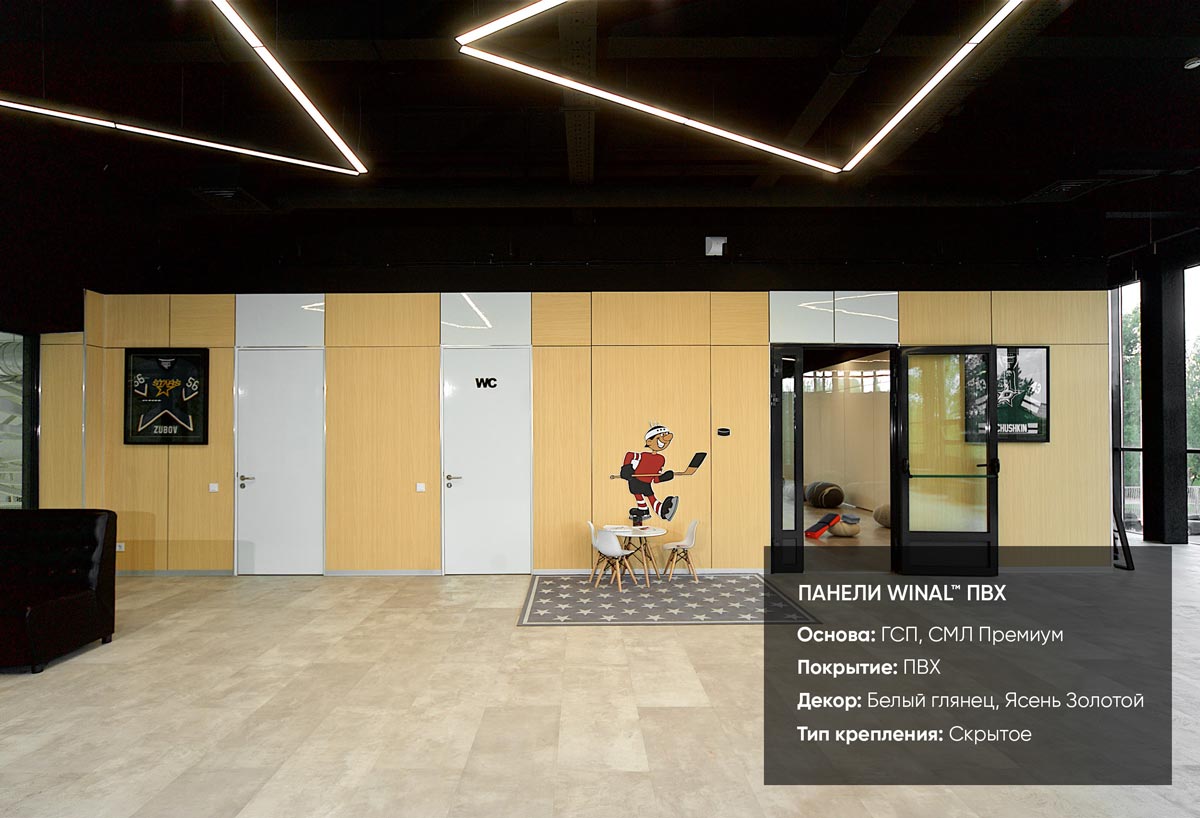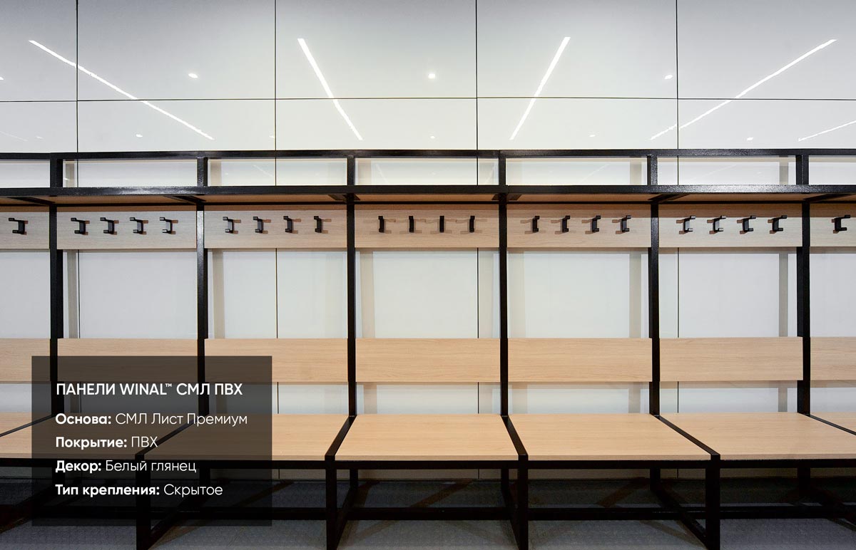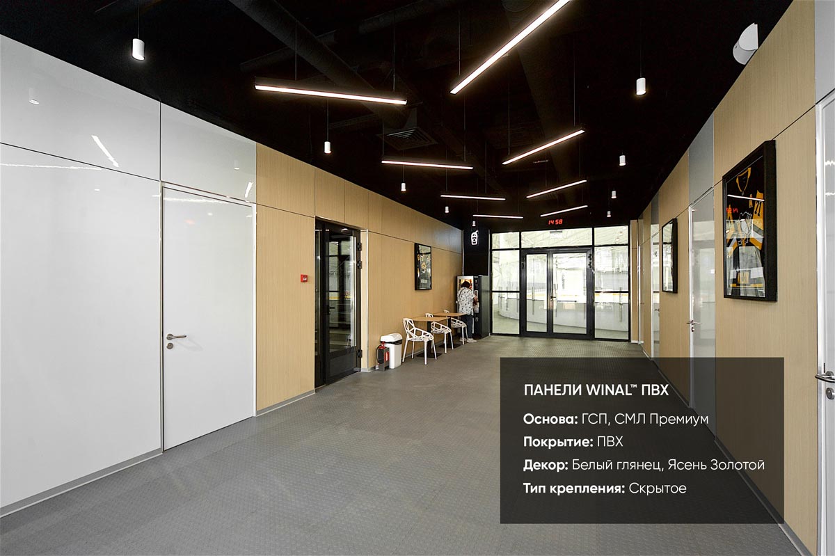 Отделка стен спортивного комплекса декоративными негорючими стеновыми и потолочными панелями WINAL СМЛ Лист, ГСП