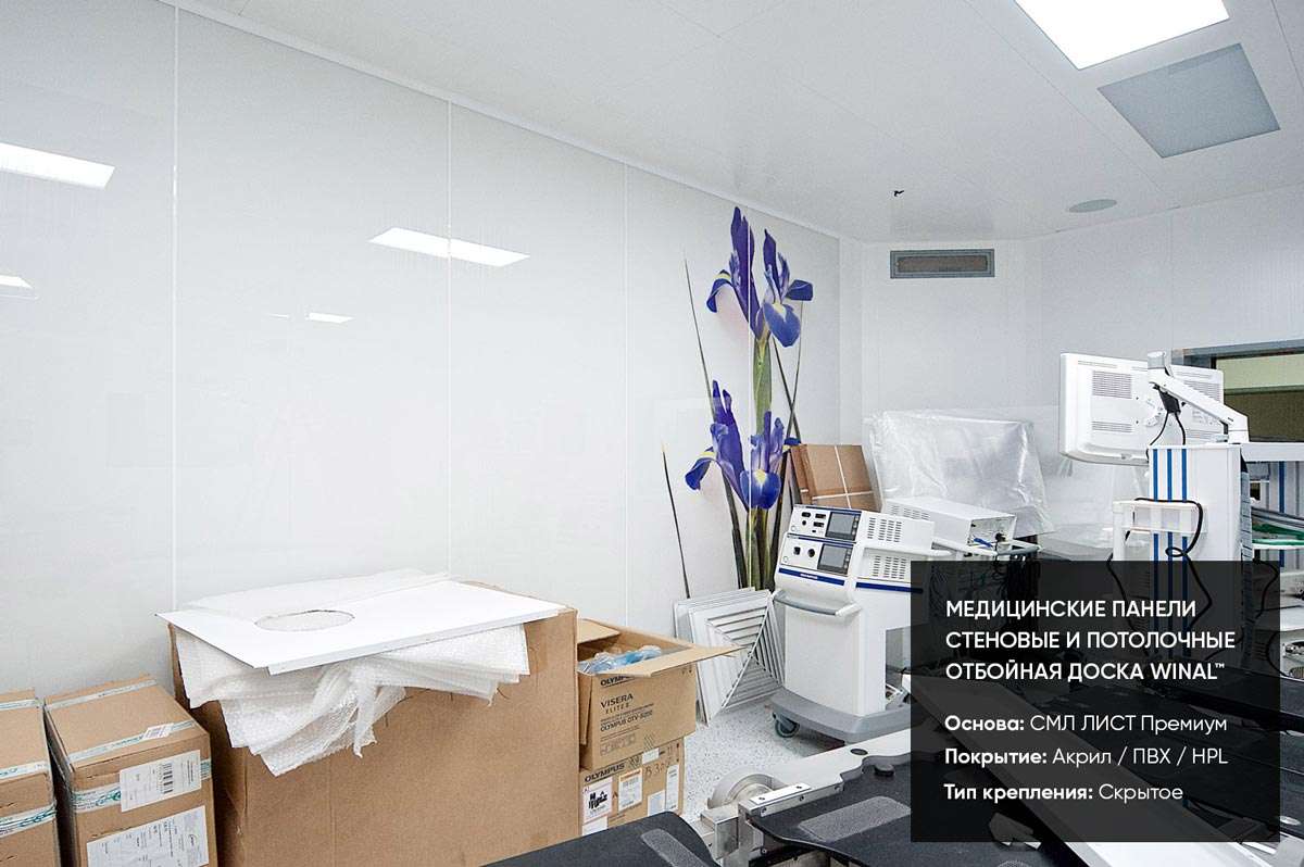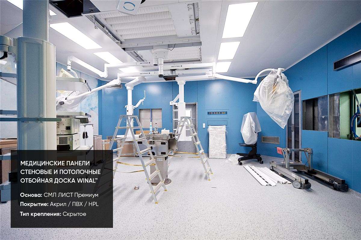 - Медицинские стеновые панели на основе СМЛ листа негорючие антибактериальные с акриловыми однотонными покрытиями