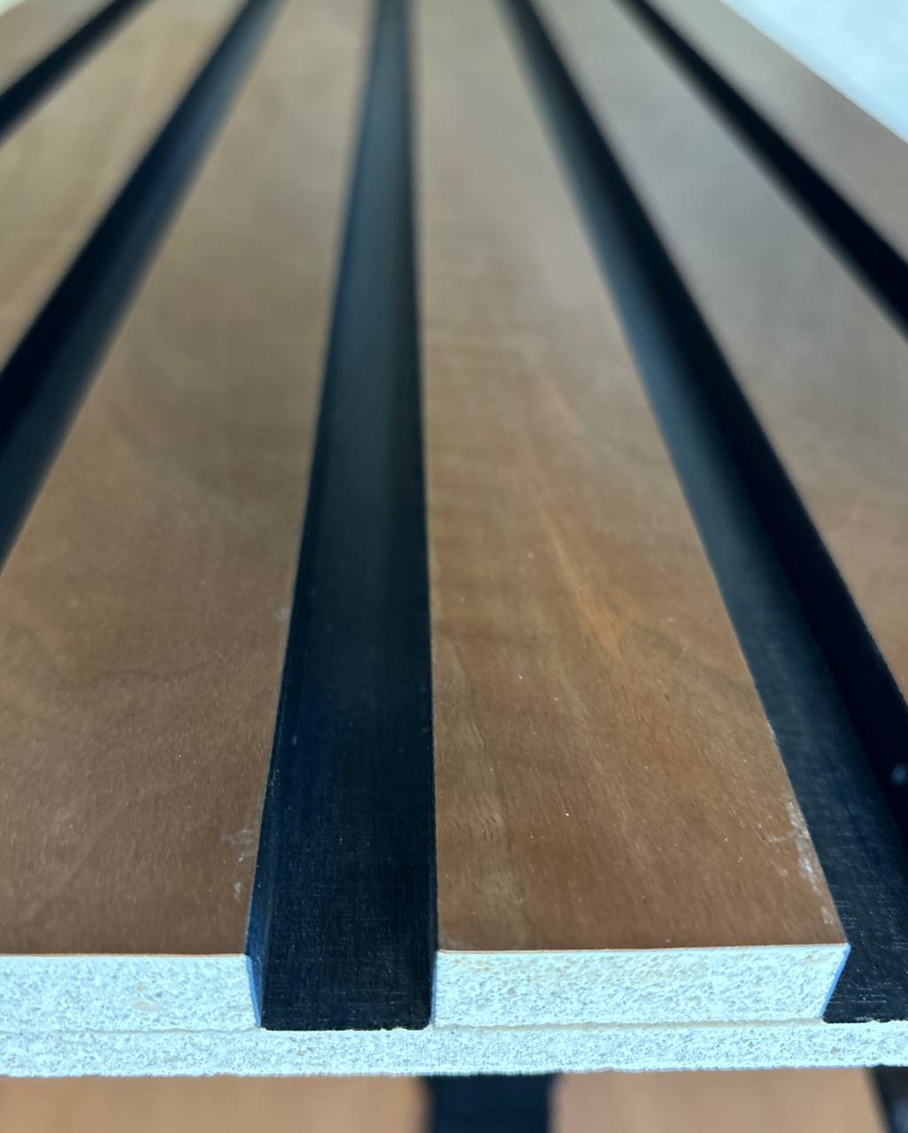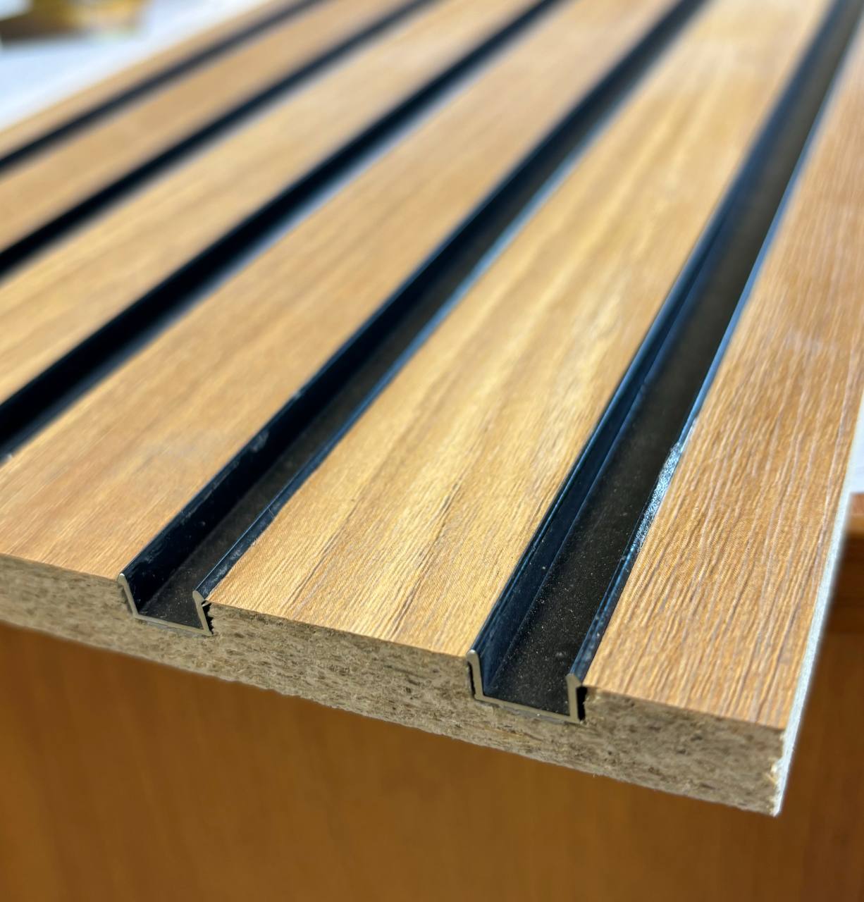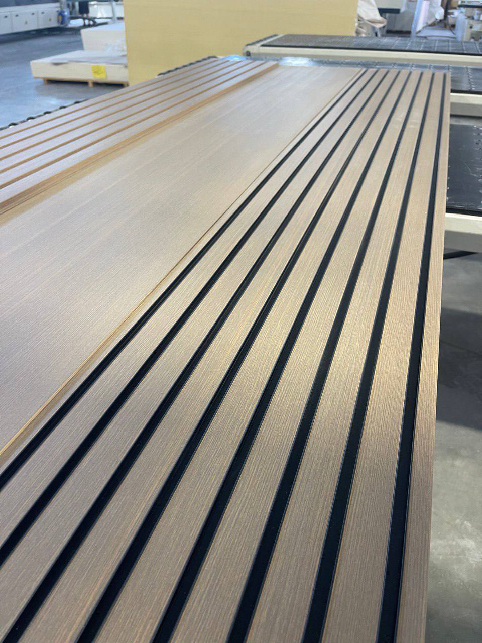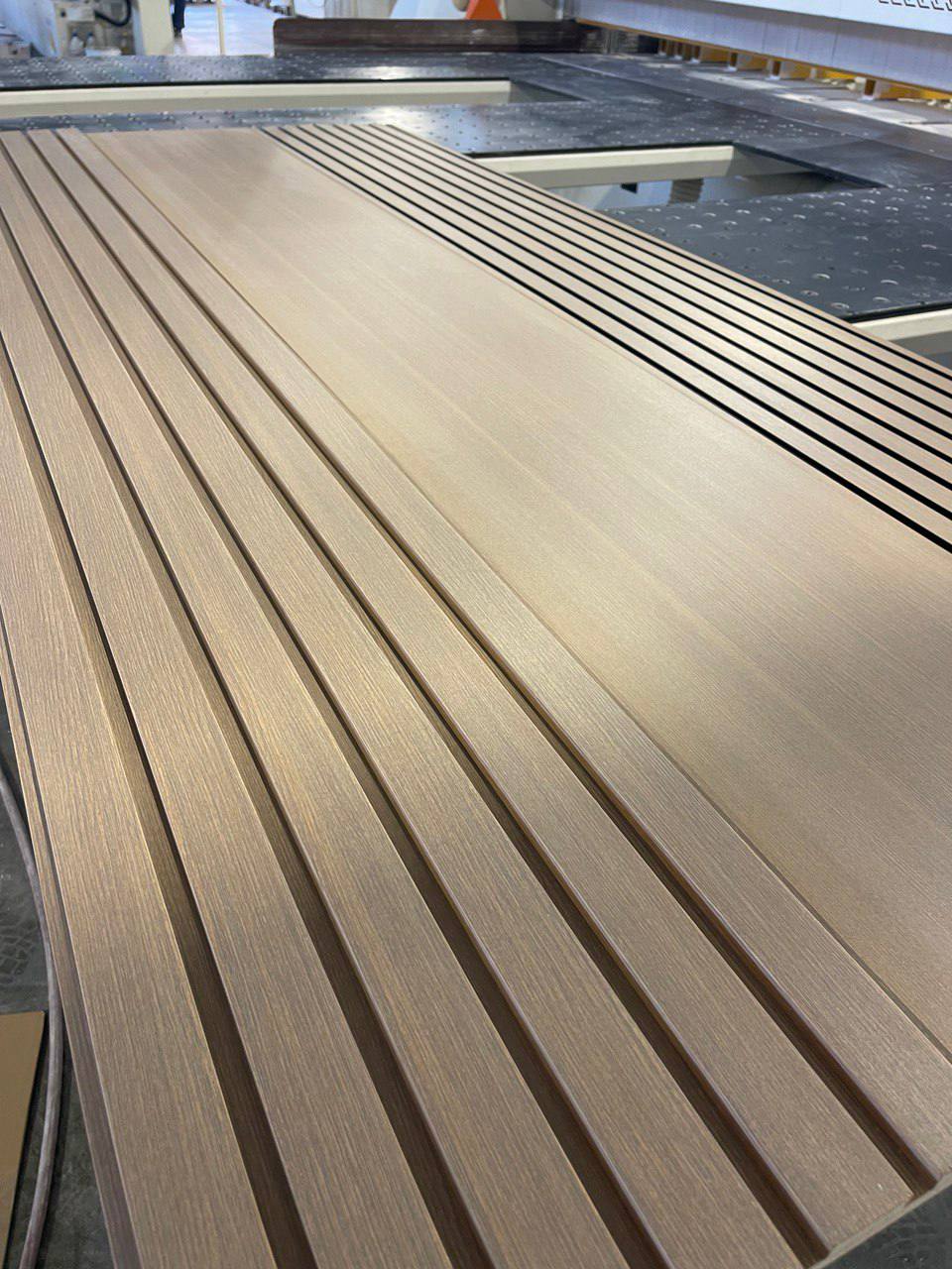 Наше оборудование позволяет реализовать различные варианты реечных панелей: Методом фрезеровки, с алюминиевой вставкой, ламели из СМЛ.
